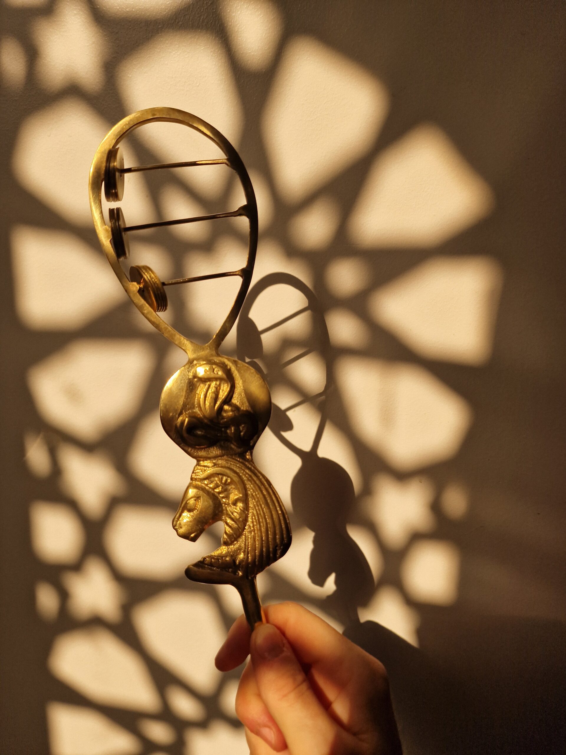 Das Sistrum ist eine Klangrassel, welches die Priesterinnen nutzen um sich während der heiligen Zeremonien und Rituale mit den Göttinnen zu verbinden. Es reinigt die Energien der Person die es spielt und des Raumes, erhöht die eigene Schwingung und verhilft mit seinem Klang in die Sphären der Hathoren (und auch Isis) zu gelangen. Spiele das Sistrum, chantre Mantren, tanze – und lade die Hathoren in deinen Raum ein.